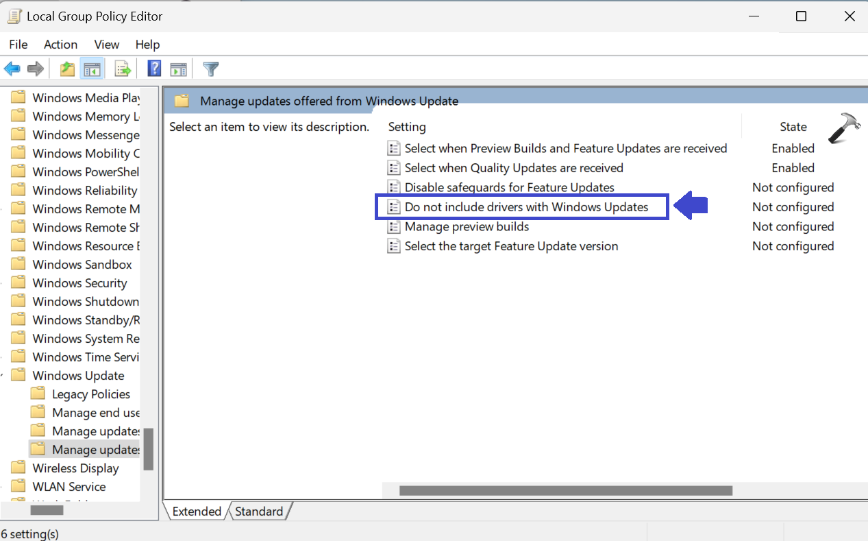4. Dubbelklicka på "Inkludera inte drivrutin med Windows Update".