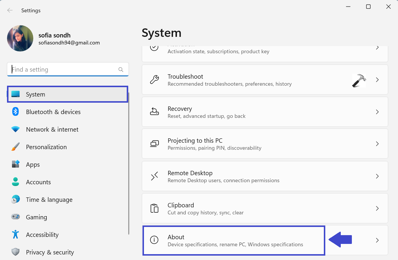 1. Öppna appen Inställningar och klicka på Om.