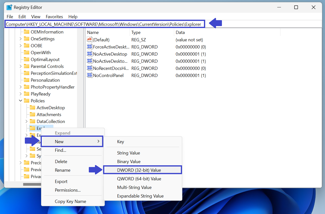 ComputerHKEY_LOCAL_MACHINESOFTWAREMicrosoftWindowsCurrentVersionPoliciesExplorer