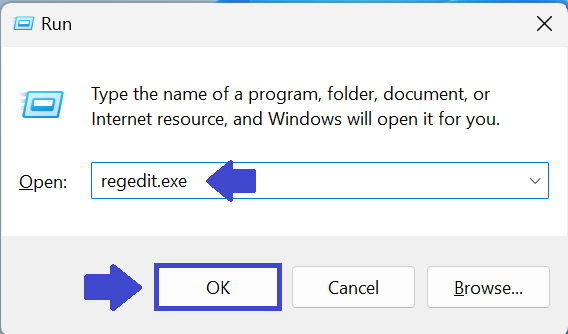 1. Tryck på Windows-tangenten + R. Skriv regedit.exe och klicka på OK.