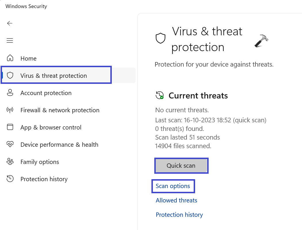 Klicka dessutom på "Skanna alternativ" och klicka sedan på "Fullständig skanning“.