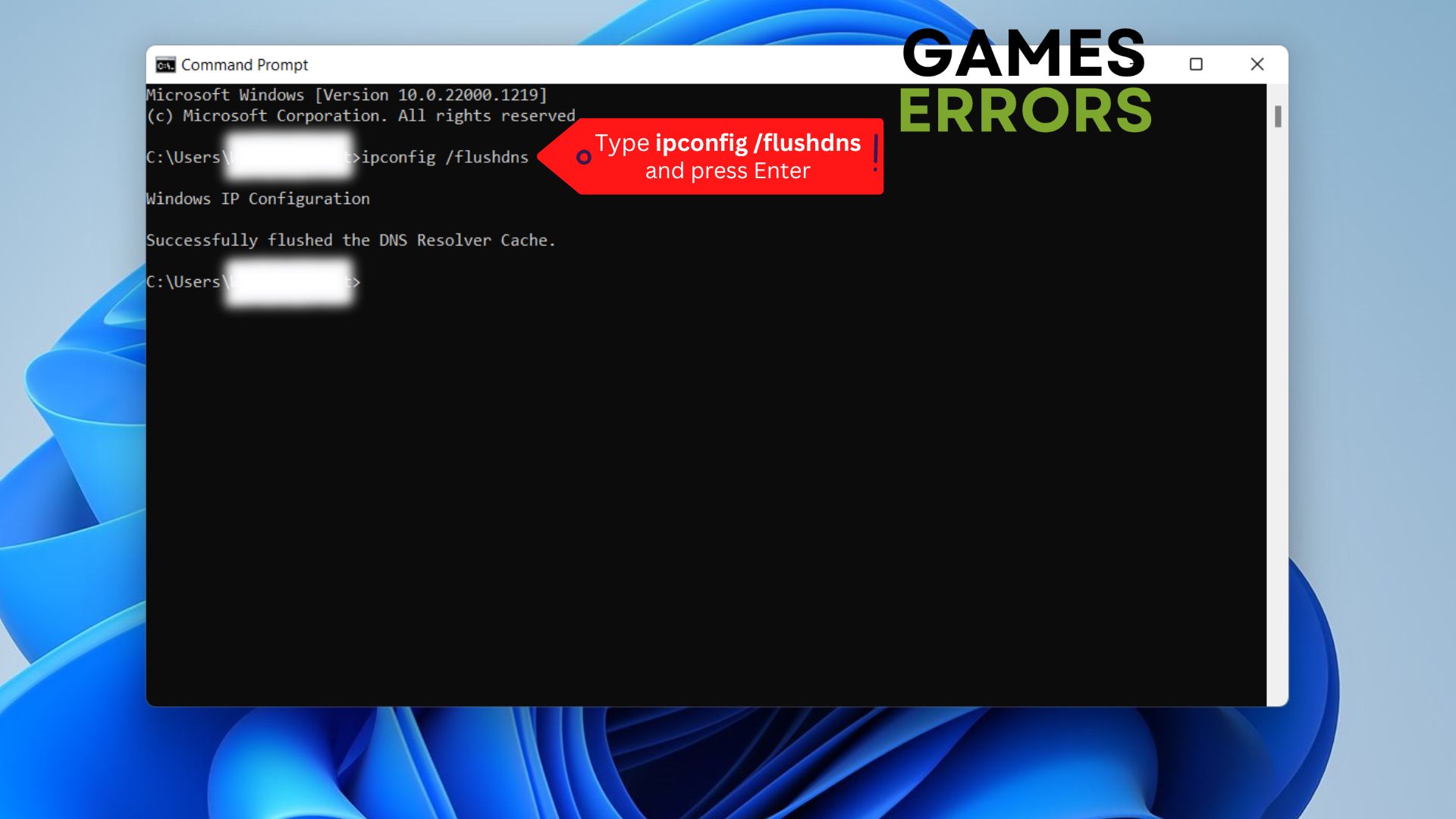- Skriv "ipconfig /flushdns” och tryck på Enter.
