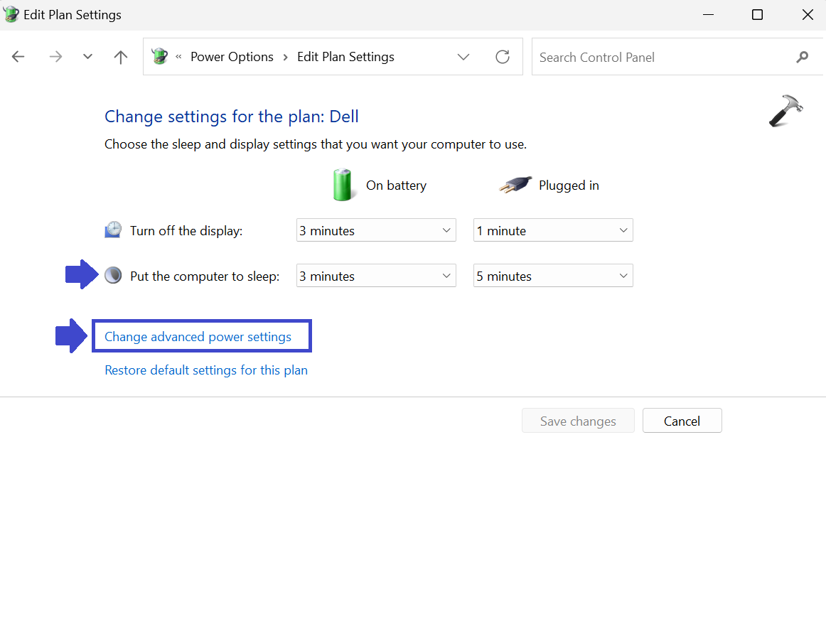 5. Klicka nu på "Ändra avancerade energiinställningar".