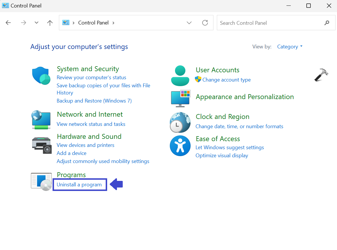 1. Öppna Kontrollpanelen. Klicka på "Avinstallera ett program".