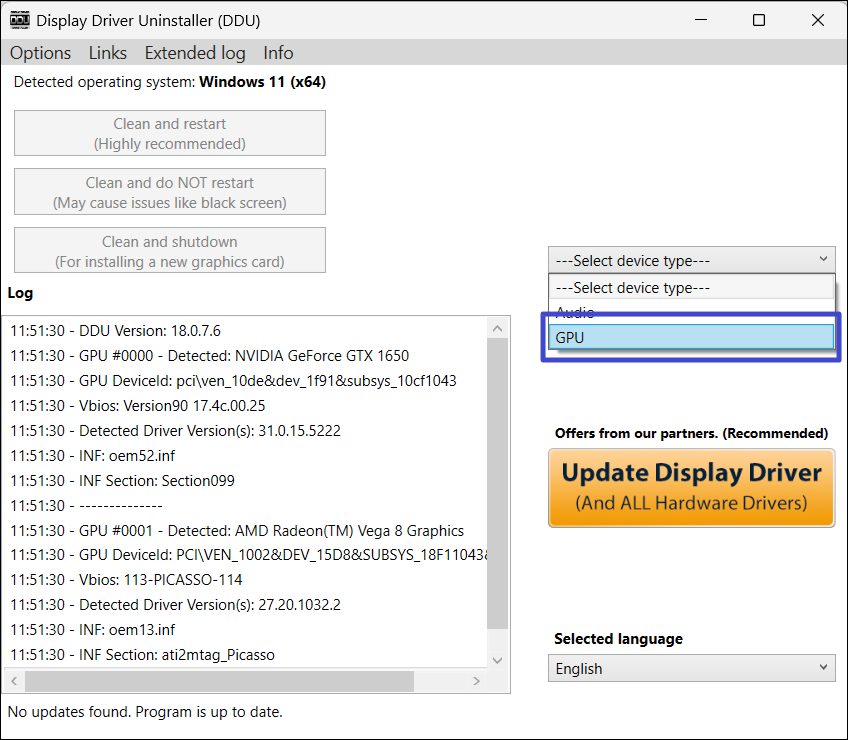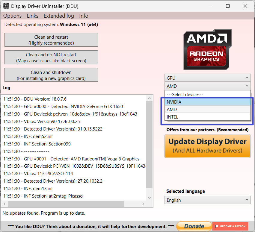 Metod 5: Installera om GPU-drivrutinen med Display Driver Uninstaller