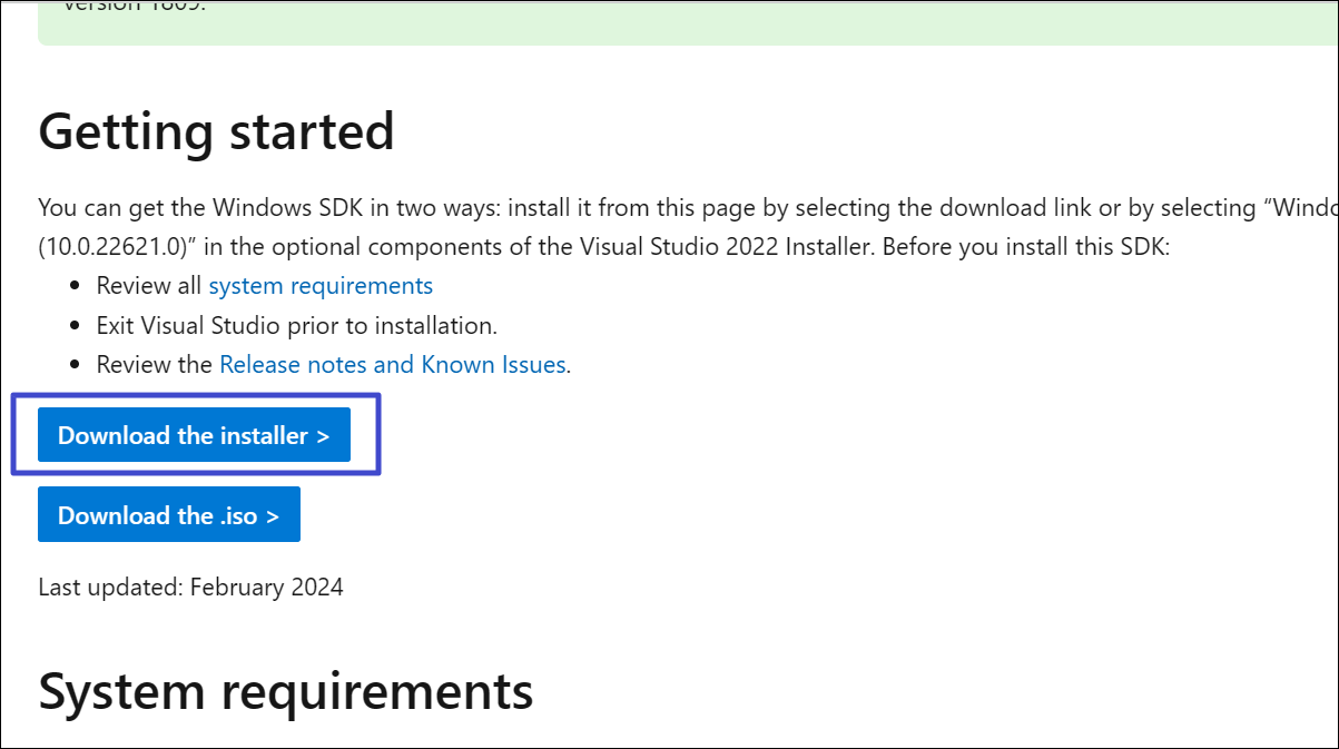 1. Gå först tillWindows SDK-webbplatsoch ladda ner installationsprogrammet.