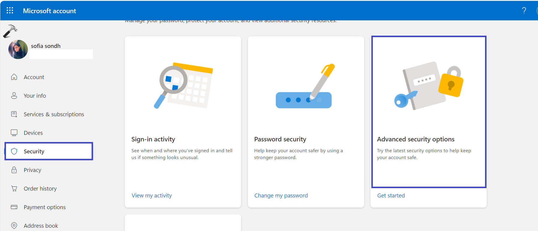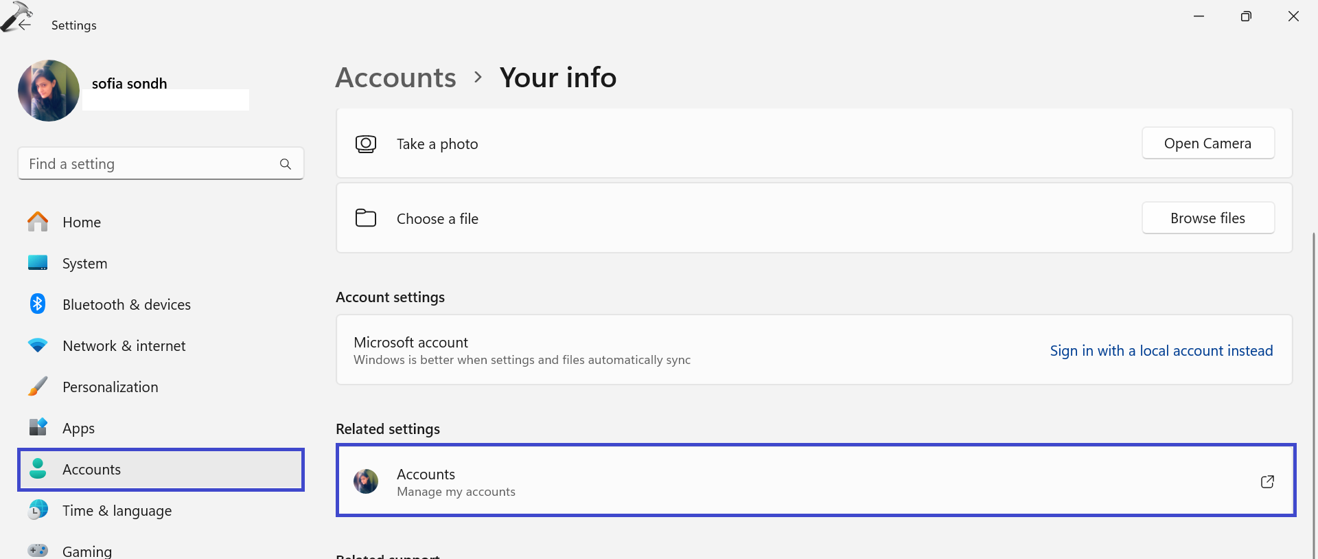 3. Under "Relaterad inställning", klicka"Konton (Hantera ditt konto)“.