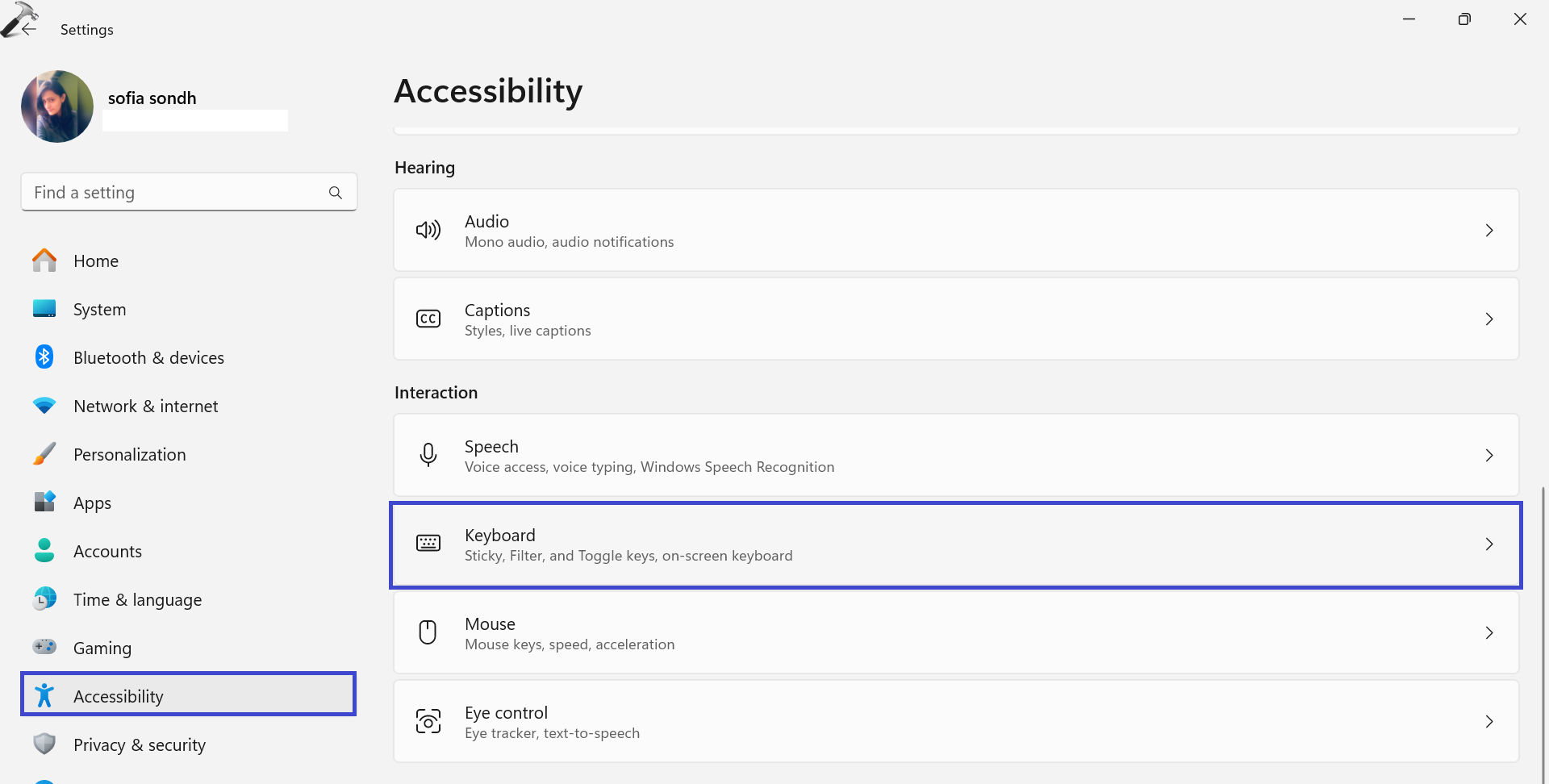 1. Öppna appen Inställningar och klicka på "Tillgänglighet => Tangentbord“.