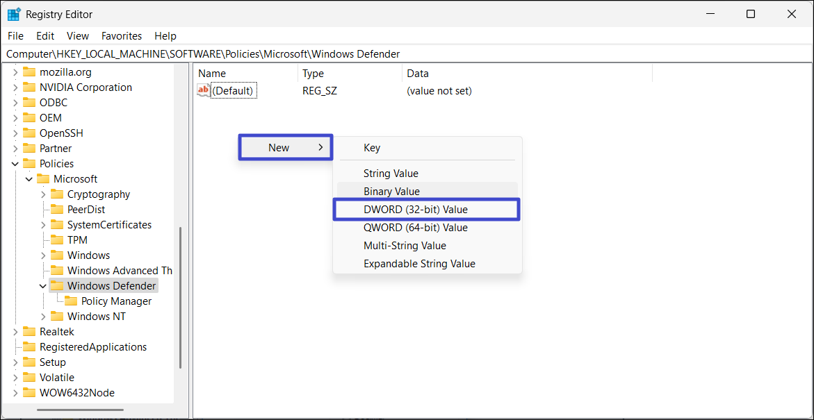 ComputerHKEY_LOCAL_MACHINESOFTWAREPoliciesMicrosoftWindows Defender