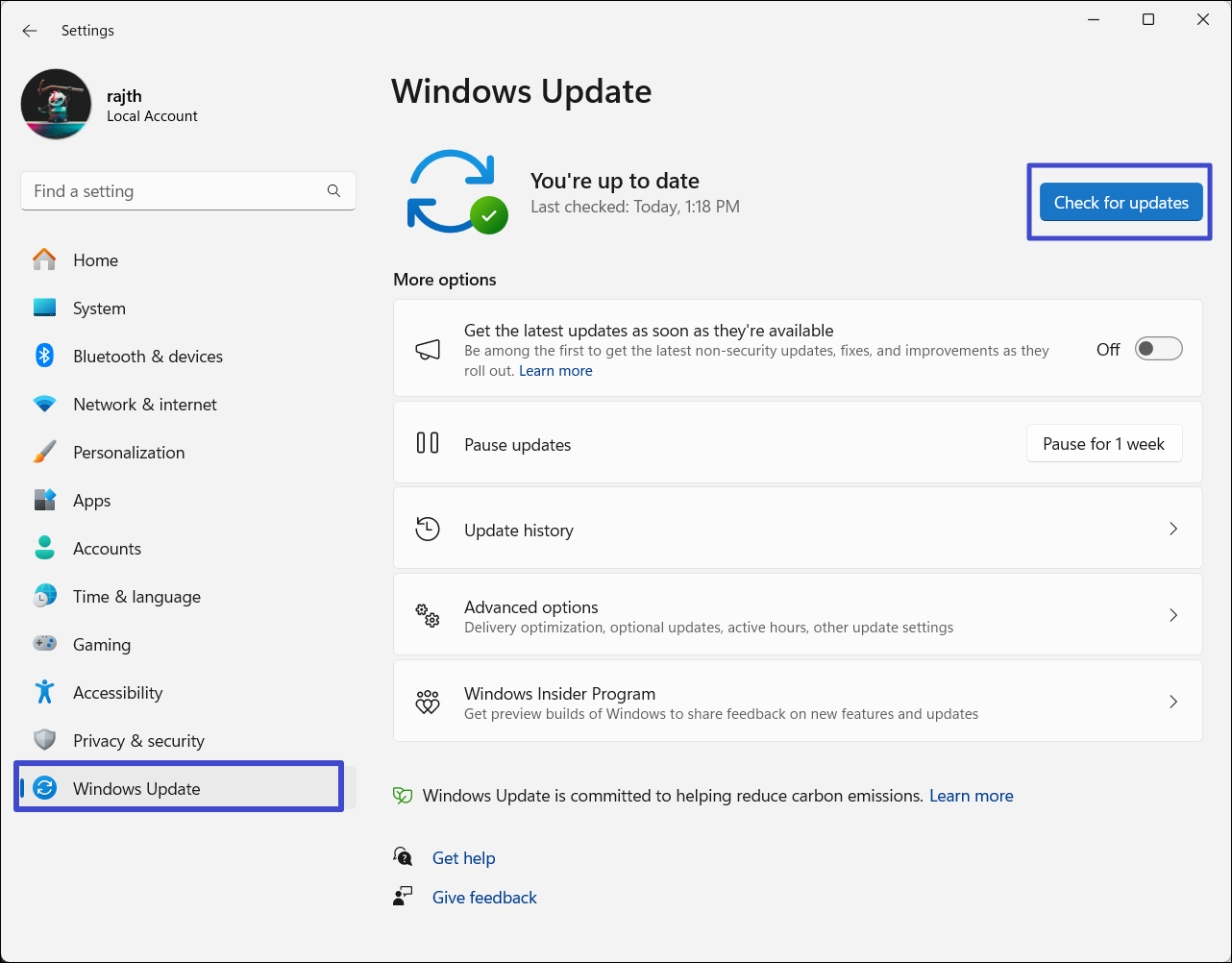 3. Klicka på "Sök efter uppdateringar”-knappen för att manuellt söka efter uppdateringar.