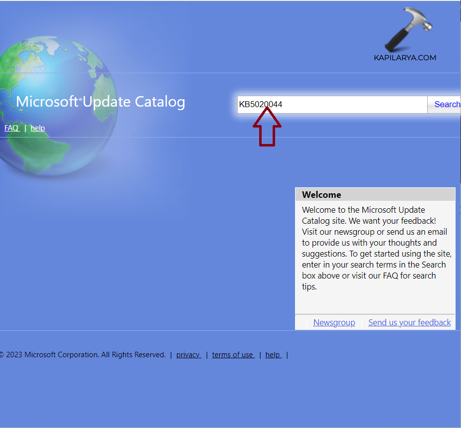 1. Öppnahttps://catalog.update.microsoft.comalias Microsoft Update Catalog-webbplatsen.