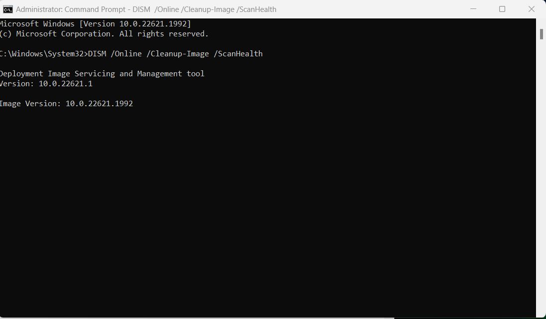 DISM /Online /Cleanup-Image /ScanHealth