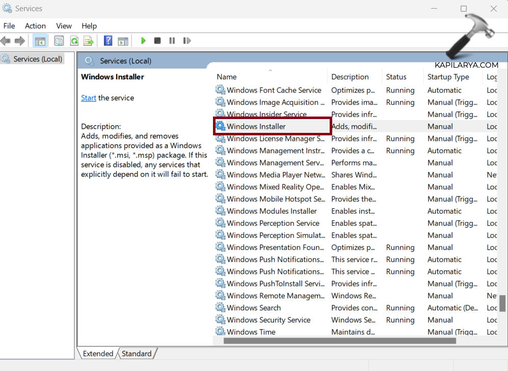 Fix 3: Starta Windows Installer-tjänsten för att fixa Windows Update-felkod 0x80248007