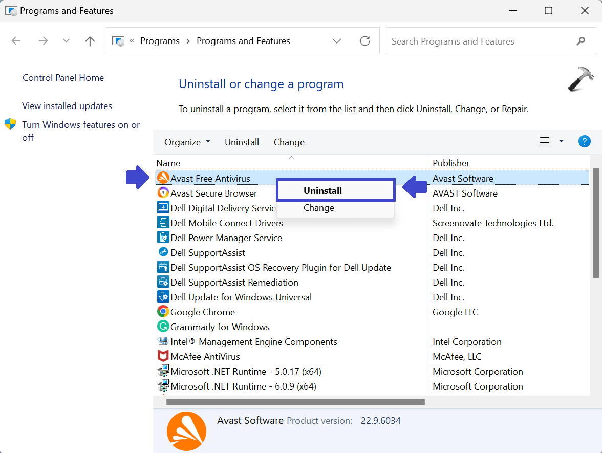 2. Högerklicka nu på antivirusprogrammet och välj "Avinstallera".