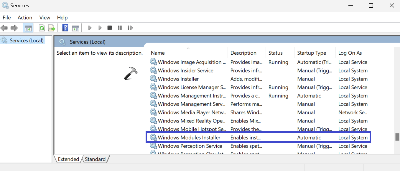 4. Dubbelklicka på "Windows Modules Installer".