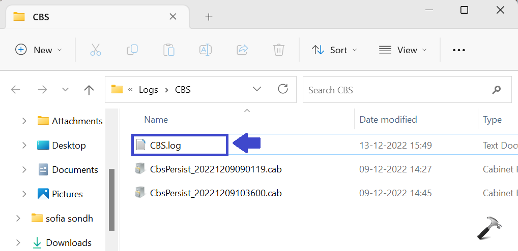 7. Än en gång, byt namn på CBS.log till CBS.old