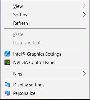 - Högerklicka på någon del av dinskrivbordetoch väljNVIDIA kontrollpanelfrån rullgardinsmenyn.