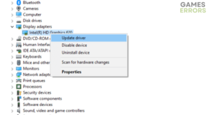 - Högerklicka på"Intel(R) HD Graphics 620"(eller någon annan föråldrad drivrutin) och välj "Uppdatera drivrutinen.”