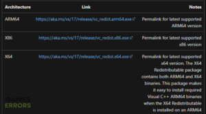 - BesökMicrosofts webbplatsochladda ner de senaste Visual C++ Redistributable-filernaför Visual Studio 2015, 2017, 2019 och 2022.