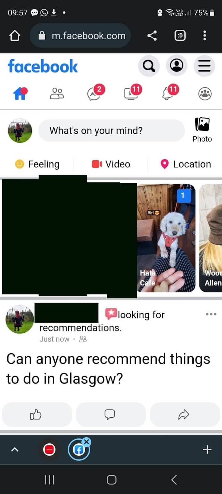 - Skriv till exempel "Kan någon rekommendera saker att göra i Glasgow?”