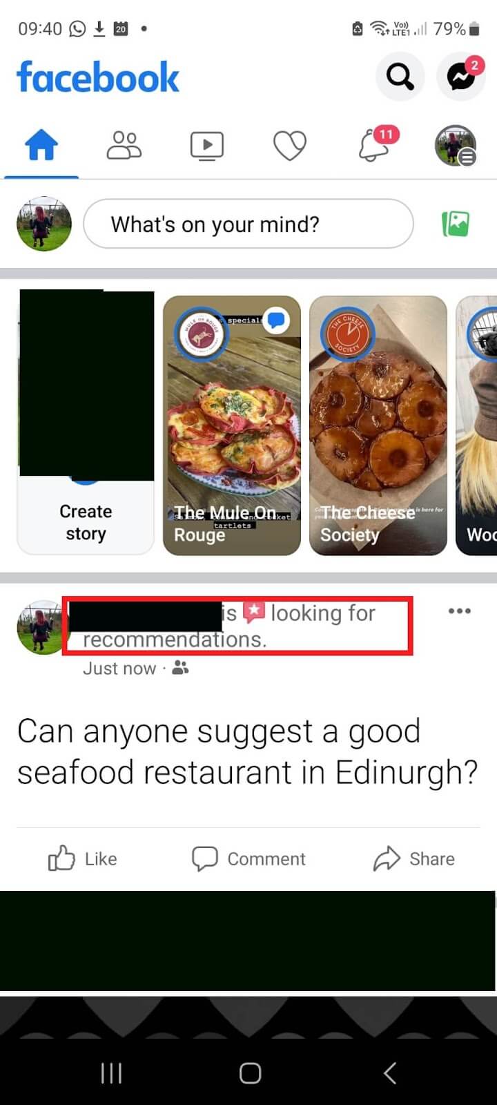 - Ange en plats och specifika detaljer för din förfrågan, skriv till exempel "Kan någon föreslå en bra skaldjursrestaurang i Edinburgh?”