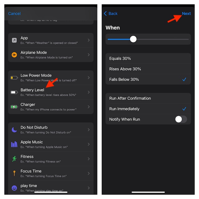 Från och med nu kommer din personliga automatisering att starta när batterinivån på din iPhone når den specifika procentandelen som valts.