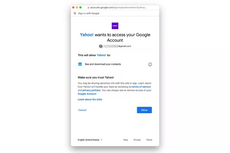 4.Tryck påTillåtaknappen med hjälp av markören påLogga in med Googleprompt.