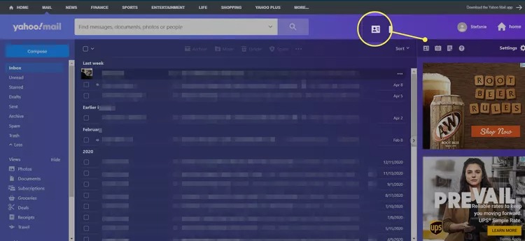 1.ÖppnaYahoo! Postpå ditt system och klicka påKontakterikonen i det övre högra hörnet av fliken.