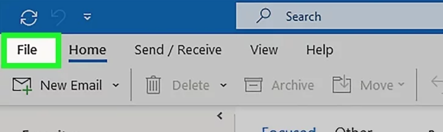 1.ÖppnaMicrosoft Outlookpå ditt system och klicka påFILalternativet i fönstrets övre vänstra hörn.