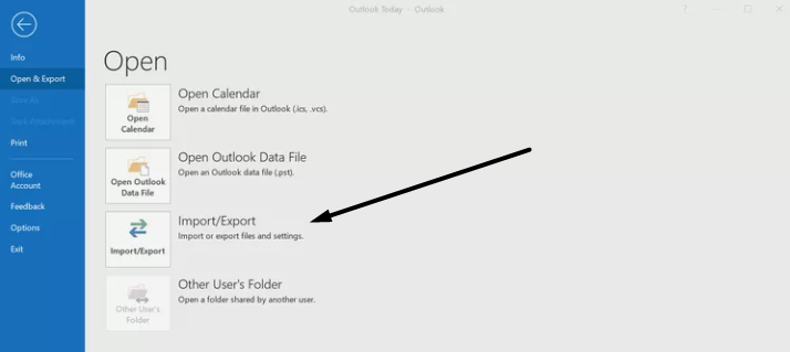2.VäljaÖppna & exporterafrån den vänstra navigeringsrutan och klicka sedan påImport/Exporttitel.