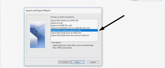 3.VäljImportera från ett annat program eller filalternativ påImportera och exportera guidenprompt.