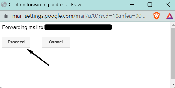 5.PåBekräfta vidarebefordranadressenuppmaning, klicka påFortsättaknappen för att gå vidare.