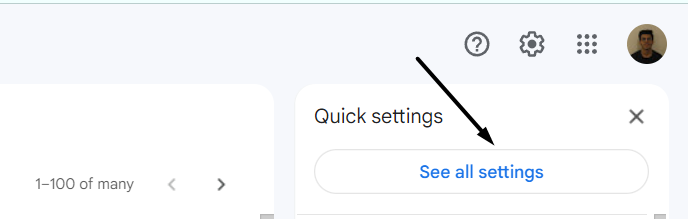 2.VäljSe alla inställningaralternativ från popup-sidofältet för att komma åt ditt Gmail-kontos inställningar.