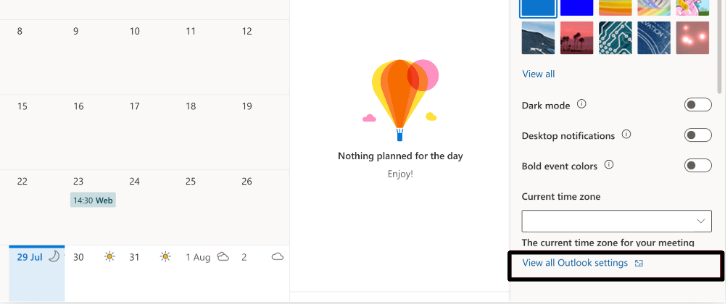 2.Klicka påVisa alla Outlook-inställningarlänk iInställningarpanel för att komma åt inställningarna.
