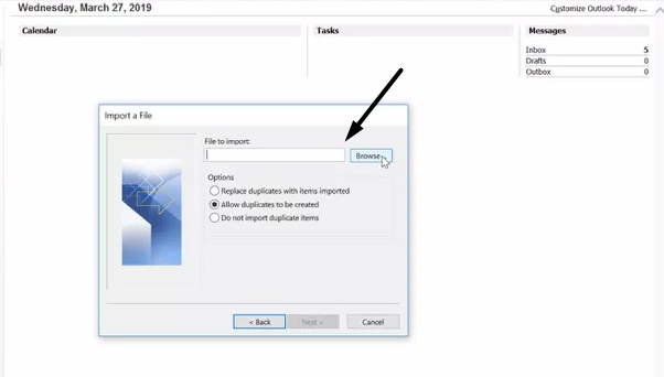 2.VäljImporteraalternativet från den vänstra rutan på fliken och klicka påVälj filknapp.