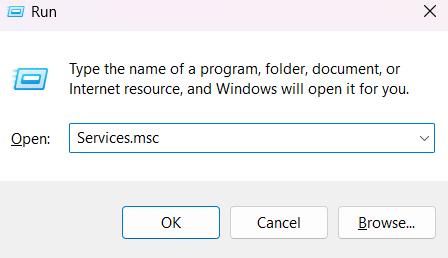 Tryck på tangentkombinationen Windows + R för att öppna dialogrutan Kör. Skriv "Services.msc" i textrutan och tryck på Enter.