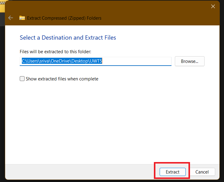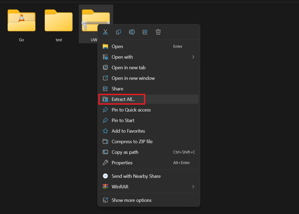 4.Högerklicka påUWT5zip-mappen och väljExtraheraallaalternativ.