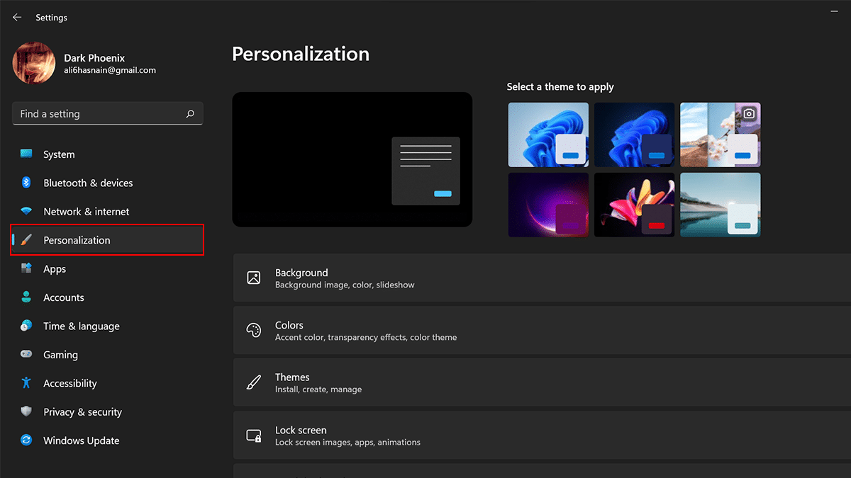 - ÖppnaInställningari Windows 11 > klicka påPersonalisering.