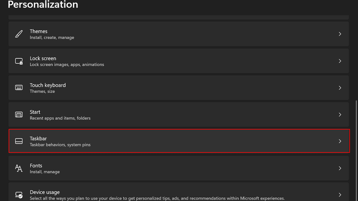 - Scrolla ner > klicka på "Aktivitetsfältet”.