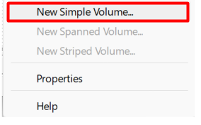 1.Högerklicka påEj allokerad lådaoch väljNy enkel volym.