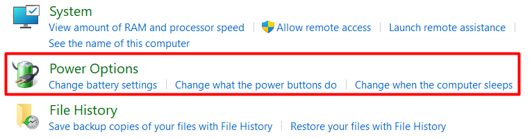 5.I denEnergialternativavsnitt, klicka påvälj vad strömknapparna gör.