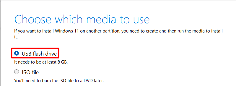 Du måste först ladda ner Windows 11 för att skapa en startbar enhet. Det finns två sätt att skapa en startbar enhet. Du kan använda verktyget Windows Media Creation för att skapa en startbar USB. Windows Media Creation-verktyget installerar Windows 11-installationen på din USB-flashenhet, som senare hjälper dig att installera Windows 11 med lätthet. Vi har förklarat detsamma i stegen nedan.