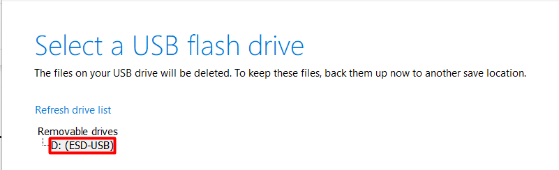 12.När Windows Media Creation-verktyget har verifierat nedladdningen kommer du att se att namnet på din flash-enhet har bytt namn. Det kommer att heta något liknandeESD-USB (enhetsbeteckning).Du kan också se Windows 11-installationen på din USB-flashenhet.