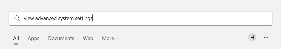 1.Klicka påWindowsfrånaktivitetsfältet,och typvisa avancerade systeminställningariSökfält.