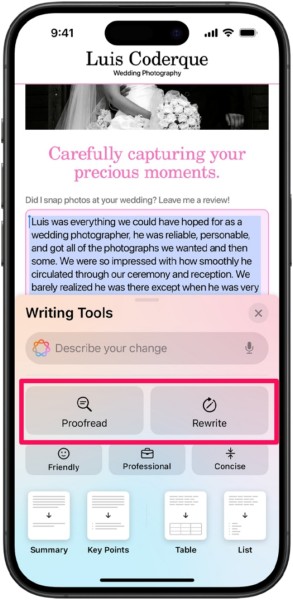 De smarta skrivverktygen är några av de mest imponerande AI-skrivverktygen som kommer att vara tillgängliga för dig efter att du har aktiverat Apple Intelligence på din iPhone i iOS 18. Dessa inkluderar enKorrekturläsverktygoch aOmskrivningsverktyg, och några andra praktiska verktyg som kan hjälpa dig att skapa ditt skriftliga innehåll i systemet såväl som tredjepartsapplikationer.