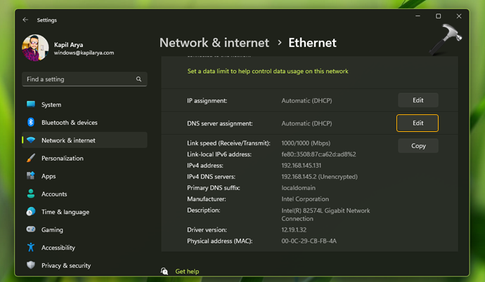 3.Klicka på nästa sidaRedigeraknapp mot DNS-servertilldelning.