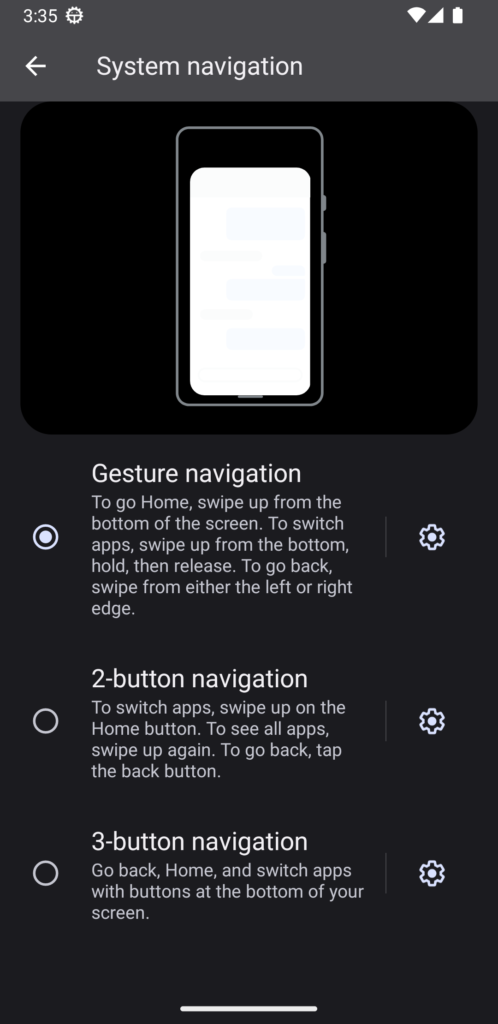 3.Ändra nu navigeringsinställningen frånGestnavigeringtill2-knapps navigeringeller3-knapps navigering.