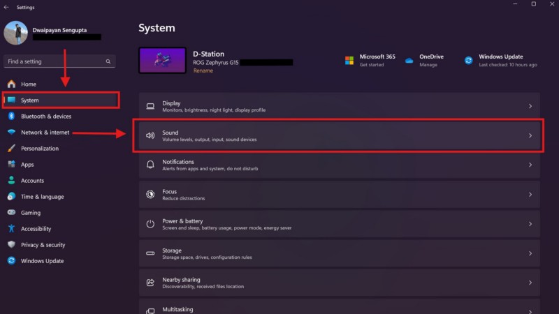 2.UnderSystemflikeni det vänstra navigeringsfältet klickar du påLjudalternativpå den högra rutan.