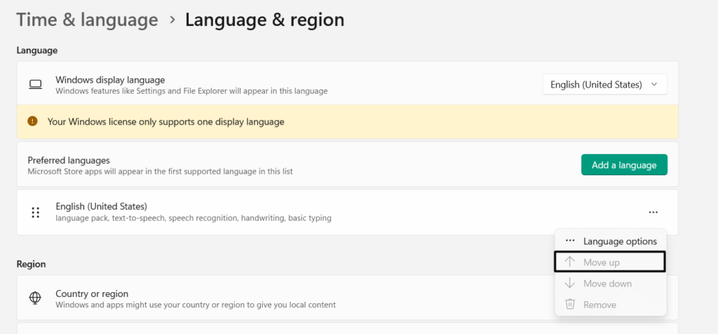 För att aktivera kinesiska på din Windows 11-dator, flytta tillSpråk & regioninställningar och gör det.