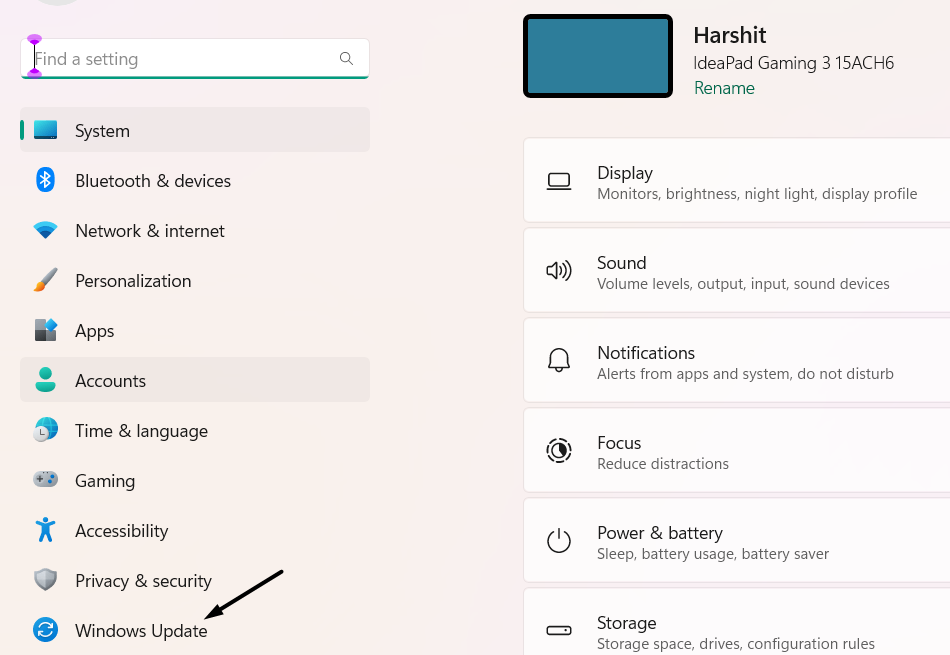 1.För att uppdatera tangentbordsdrivrutinen, gå tillWindows Updateavsnittet i appen Inställningar.